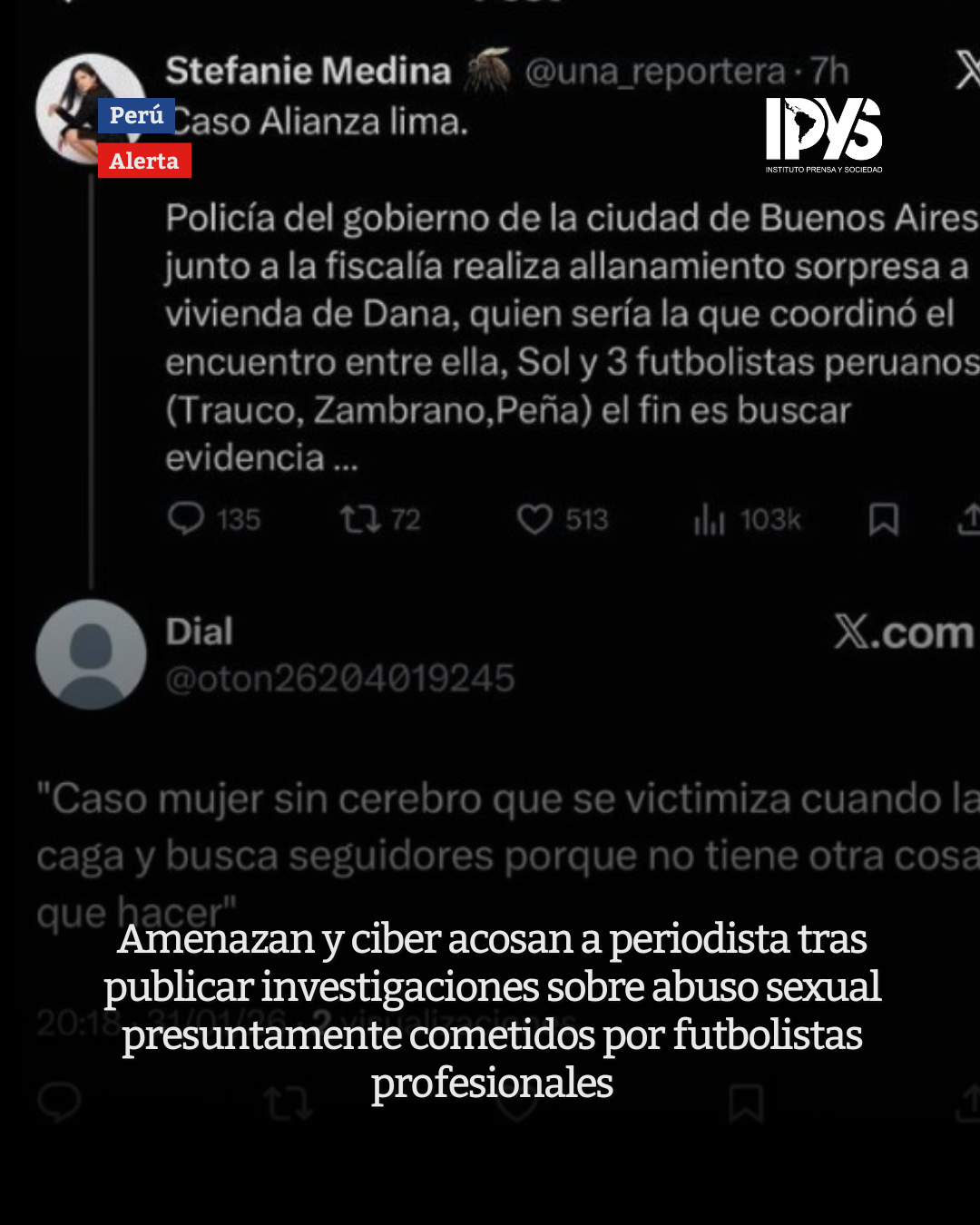 IPYS denuncia y condena estos actos de violencia, acoso y amenazas de muerte contra periodistas que están haciendo su trabajo de fiscalizar la gestión municipal de Franco Vidal. Además, exige una inmediata investigación por el presunto uso de recurso públicos para contratar ejércitos de trolls contratados para amedrentar periodistas.